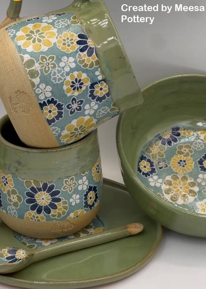 Ceramic transfer papers are easy to apply on both flat and curved surfaces and create instant decorating effects with little effort. It’s as simple as applying a child’s tattoo. All you need to do is dampen the back of the transfer paper and press print side down on the surface you are working on. Leave for a few minutes before peeling off the paper to reveal the pattern. Once dry any additional embellishing can be done. If applying a glaze, take care by gently dabbing the first coat of glaze over the transfer pattern. Subsequent coats can be brushed on. To learn more and for thorough step by step instructions click on the following link “How to Apply Ceramic Transfer Papers”.